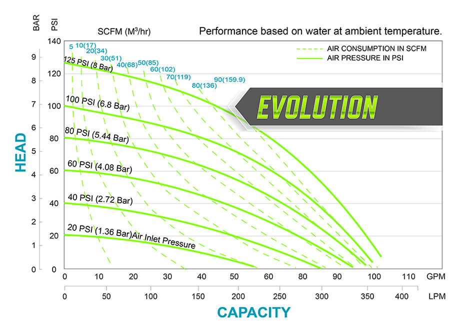 • 125 psi or 289 ft. of water (8.6 bar or 88 meters)
