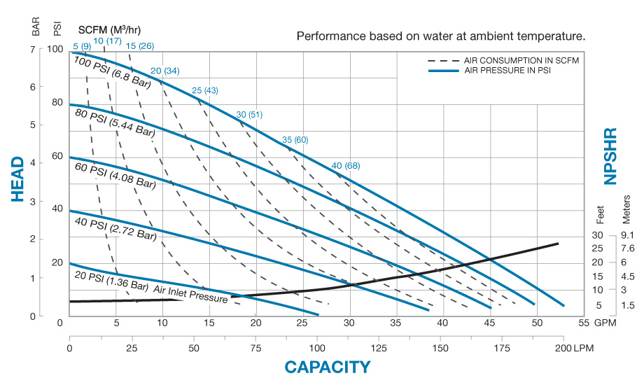 - 0 to 53 gpm (200 lpm)