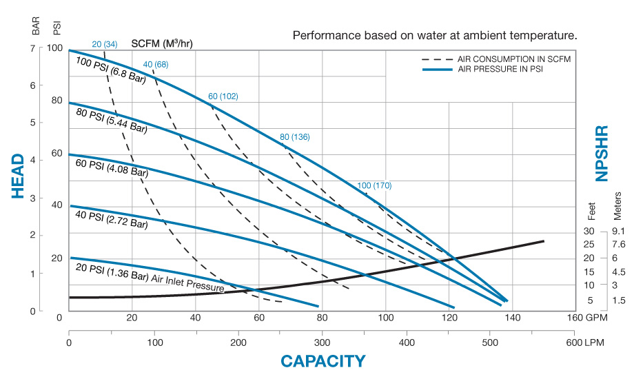 - 0 to 125 gpm (473 lpm)