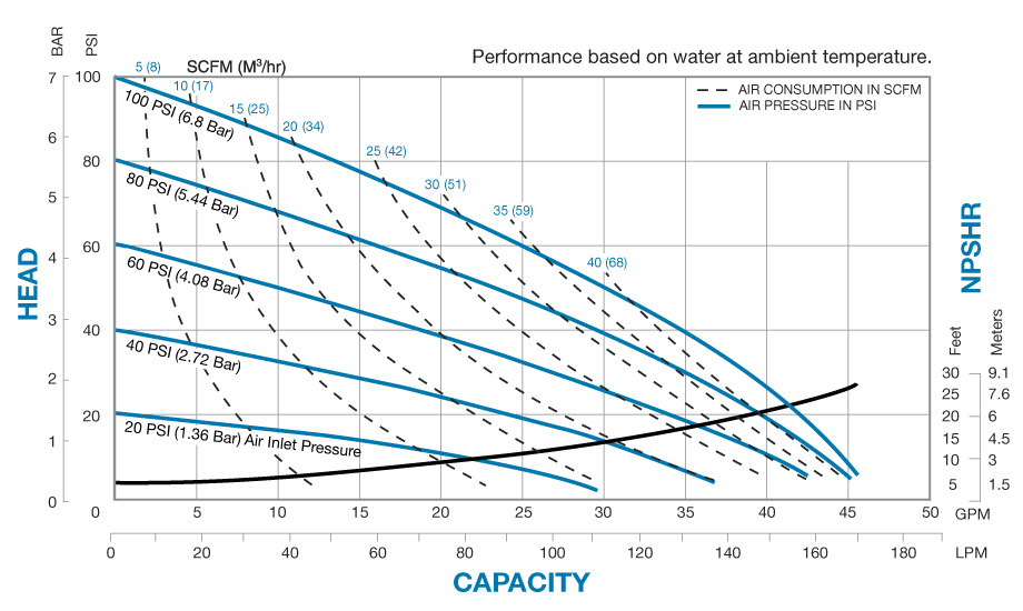 - 125 psi or 289 ft. of water (8.6 bar or 88 meters)