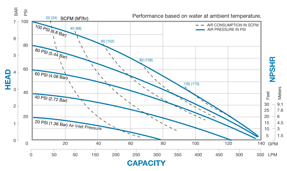 - 0 to 135 gpm (511 lpm)