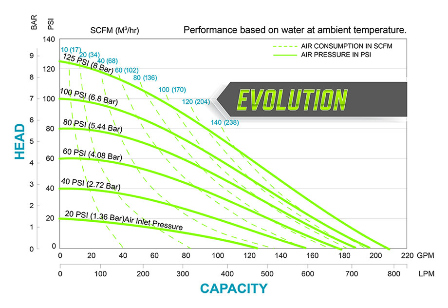 • 0 to 208 gpm (786 lpm)